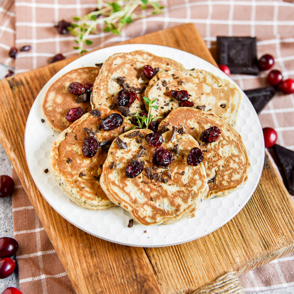 🥞 Placuszki z czekoladą i żurawiną – 563 kcal
